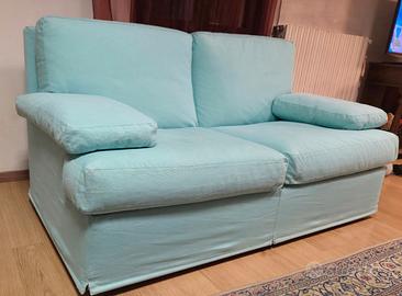 Divano 2 posti in tessuto celeste