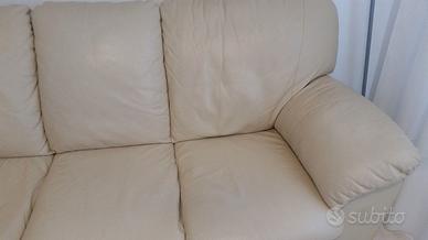 Divano 2 posti con ampi braccioli in vera pelle morbida, schienali imbottiti e comodi poggiatesta, che lo rendono particolamente confortevole, senza segni e macchie. Dimensioni cm. 159 x 95 x 98 ritiro e trasporto a carico dell'acquirente