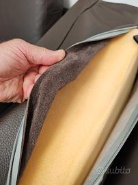 Divano in vera Pelle 1500 spessorato manifattura di Aziende di divani di Altanura Leader del made in Italy. Nella foto vi dimostro dal cuscino aperto la qualita' della pelle spessorata e della gomma di alta densita' indeformabile.