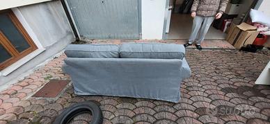 Divano EKTORP di Ikea 2 posti, anno di acquisto 2020, tessuto poliestere riciclato, sfoderabile e lavabile, colore grigio, misure 179*88*88. la parte inferiore presenta tessuto rovinato, da lavare.