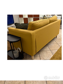 Divano 2 posti in tela cotone colore senape + 4 cuscini in cotone colore verde,