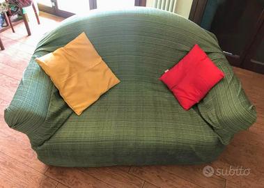 Vendo causa trasloco divano 2 posti in ottime condizioni con fantasia multicolore, in dotazione anche copridivano, più 2 cuscini.