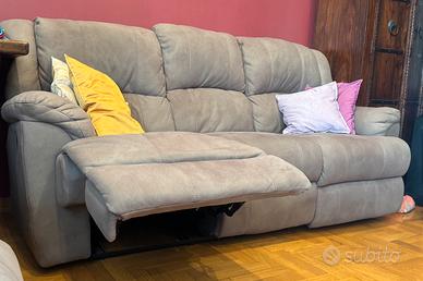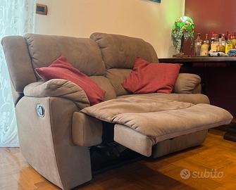 Entrambi i divani sono color tortora Il divano due posti ha la spalliera reclinabile e il sollevamento dei piedi su entrambe le sedute. Il divano tre posti ha il sollevamento piedi e la spalliera reclinabile sui due posti laterali. Quello centrale è fisso. Entrambi i divani sono in ottime condizioni. Ritiro sul posto a carico dell’acquirente. RITIRO SUL POSTO