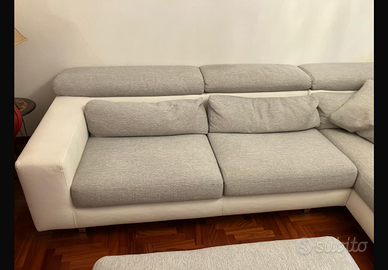 Vendesi parte divano Poltrone e Sofa. 2 posti, con cuscino poggiatesta alzabile. Struttura in pelle bianca e cuscineria in tessuto. Ottime Condizioni. È stato lavato in lavanderia prima dell’estate. Lunghezza 2,10 Larghezza 107. Molto comodo. Visibile ai Colli Aminei, Napoli