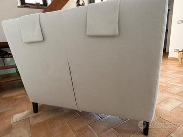 Bel divano 2 posti sfoderabile completo di cuscini e poggiatesta in perfetto stato di conservazione. Le misure sono: L130 P80 H100