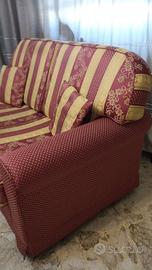 Divano 2 posti rosso-beige + 2 cuscini abbinati