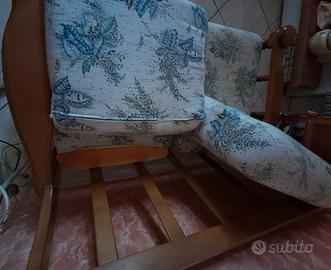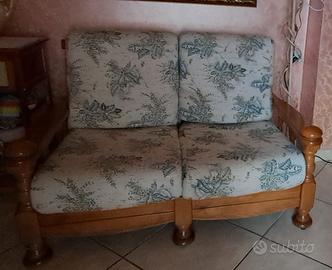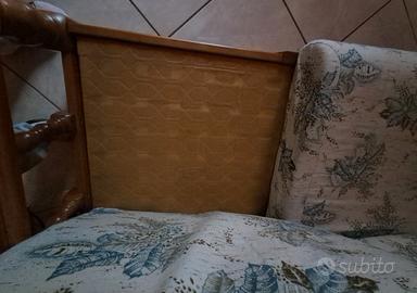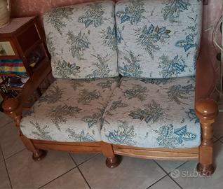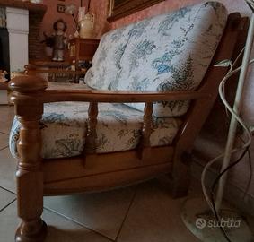 Divano rustico in legno di noce, due posti, con cuscini lavabili con spugna estraibile con cerniera, fantasia floreale, come nuovo...
