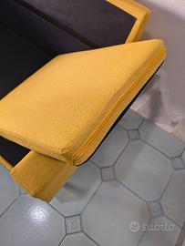 divano 2 posti struttura in legno foderato in tessuto giallo misure 132x76