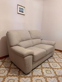Vendo divano 2 posti dalle linee moderne, comodo e ben tenuto, in tessuto beige neutro che si adatta facilmente a qualsiasi ambiente.