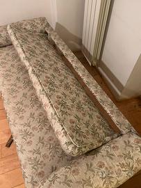 Vendo delizioso divano Vintage a 2 posti, perfetto per amanti dello stile Shabby Chic, provenzale o modernariato. Il divano si distingue per la sua linea classica con braccioli a rullo e piedini in legno originali dell'epoca.