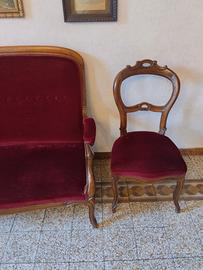 Divano + 2 sedie in velluto bordeaux.