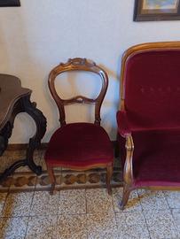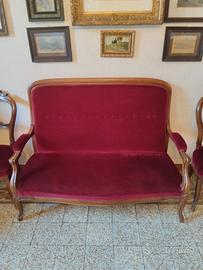 Divano + 2 sedie in velluto bordeaux