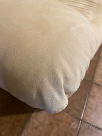 Divano 2 sedute comode ospita fino a 3 posti. Tessuto Alcantara sintetico. Colore giallo/beige. Presenta alone in prossimità della seduta ma è in buono stato.