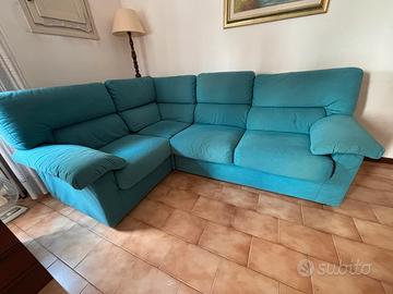 Divano angolare 3 posti Rivestimento in tessuto idrorepellente poliestere 100% Alta resistenza al pilling Alta solidità del colore alla luce e allo sfregamento Colore: verde acqua Made in Italy Ritiro a carico dell’acquirente.