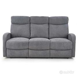 Divano 3 posti 180 cm relax reclinabile letto design manuale in tessuto grigio Vienna