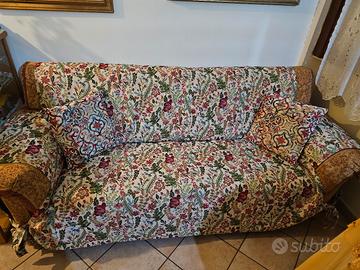 Vendo divano letto, 3 posti a sedere, in buono stato d'uso con copertura copri divano, nonché 2 poltrone non reclinabili, medesima tappezzeria del divano, anch'esse in buono stato d'uso. Dimensioni divano 214x96 cm, poltrone 100x80. Possibilità di visionare. Ritiro di persona. Prezzo poco trattabile.