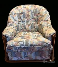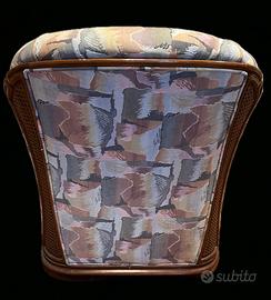 Divano a 3 posti e due poltrone in tessuto con cornice in massello e rattan in buono stato sempre coperto. Ritiro possibile ad altezza strada con facile accesso. Si valutano offerte.