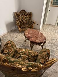 Divano 3 posti+2 un posto stile barocco + tavolo