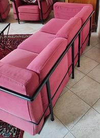 Divano LC2 Le Corbusier (riproduzione) made in Italy, seppur usato, in buono stato con struttura in metallo nero in perfette condizioni. Tessuto sfoderabile ma un po' sbiadito