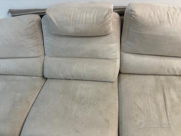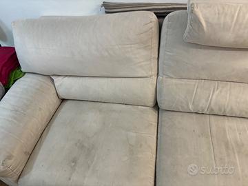 Il divano è usato e presenta alcuni segni di usura e piccole macchie, come visibile in foto, ma è strutturalmente solido, confortevole e perfetto per casa vacanze, taverna, studio o come soluzione economica per un salotto.