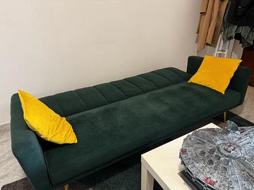 Vendo divano letto colore verde scuro, in ottime condizioni. 📏 Dimensioni: Lunghezza: 193 cm Profondità: 52 cm Altezza seduta: 36 cm Larghezza divano letto aperto: 97 cm ✔ Comodo e compatto ✔ Ideale per soggiorno, studio o casa vacanza ✔ Si trasforma facilmente in letto ✔ Struttura solida 📍 Ritiro a mano – Centro Benevento 📦 Primo piano (nessuna difficoltà per il trasporto) 🚫 No spedizione Vendo per cambio arredamento. Disponibile per visione su appuntamento.