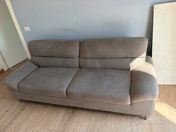 Vendo divano 3 posti comodo e spazioso. Colore beige/tortora, si adatta facilmente a diversi ambienti. Misure: - Lunghezza: 220 cm - Profondità: 85 cm - Profondità seduta: 53 cm Il divano è strutturalmente in ottime condizioni, comodo e solido. Necessita solo di una pulizia/lavaggio per tornare come nuovo. Si trova al primo piano Trasporto a carico dell’acquirente Prezzo: 100€