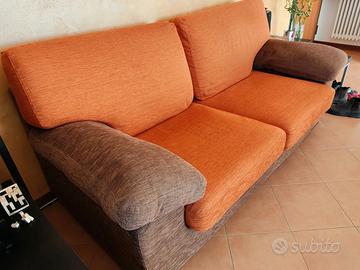 Divano PoltroneSofà in ottimo stato. Bicolor (Marrone e Arancione) in tessuto. Completamente sfoderabile e lavabile. 3 Posti con Dimensioni 195 x 95 x 95 mm