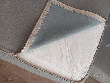 REGALO per necessità di fare spazio: Divano colore grigio, in tessuto di cotone, bordature in vera pelle, solido e confortevole, completamente sfoderabile, Marca Bodena Made in Italy, lunghezza 220 cm. Ritiro zona Torrino Mezzocammino