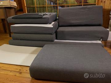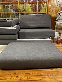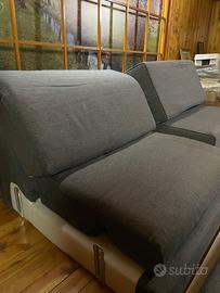 Divano tre posti in tessuto sfoderabile color grigio medio, rifatto da poco e usato pochissimo. Misure: profondità mt 1,05 Lungh mt 2,25 H mt 0,75.