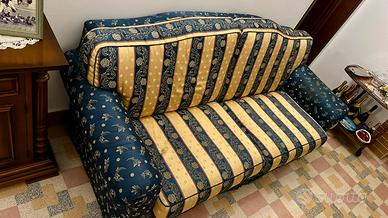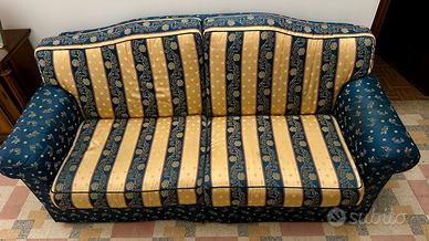 Vendo divano 3 posti in stile classico, colore blu con eleganti inserti oro e motivo floreale.