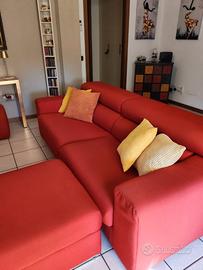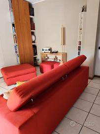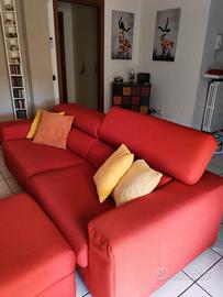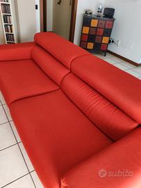 DIVANO IN TESSUTO ROSSO (225x96x42 H. SEDUTA) + POUF coordinato (98x68x42). OTTIMO STATO - POGGIATESTA RECLINABILI.
