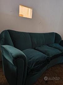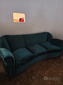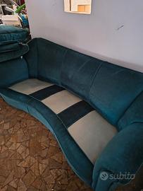 Divano Tre Posti Color Ottanio Blu Petrolio in velluto con Zampe In Legno, stile anni 80 vintage ma di grande effetto anche oggi. Sedute soffici💙. Possibilità di abbinarlo a una poltrona con lo stesso stile!
