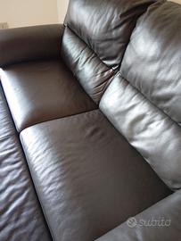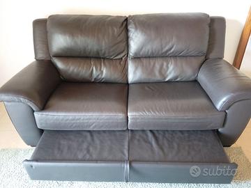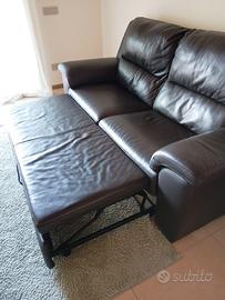 Divano poltrone e sofà, con poggia piedi estraibile, in pelle marrone scura.