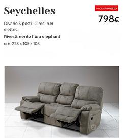 Divano modello Seychelles di Mondo Convenienza, 3 posti con 2 relax-recliner elettrici perfettamente funzionanti, in tessuto. Acquistato a inizio 2024, vendo per passaggio a divano in pelle. Nessun difetto. Misure come in foto. Ritiro da parte dell'acquirente a Reggello (FI)