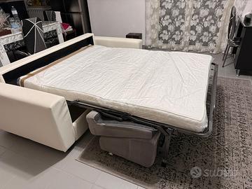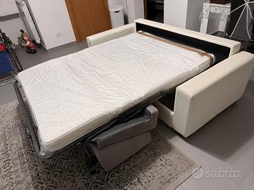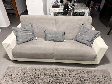 Divano letto in eco pelle bianca e tessuto grigio cemento, il divano all interno porta un letto matrimoniale con materasso alto 12cm Nuovo ( imbustato come si può vedere nella foto) I braccioli del divano sono smontabili. 204 x 95 x 90cm (larghezza, profondità, altezza)