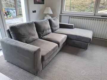 Divano 3 posti 240x170cm , chaise longue può andare ambo i lati, in tessuto Alcantara e completamente sfoderabile.