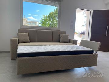 Un letto vero e proprio indipendente dal divano che può essere posizionato ovunque e l'altro comodo letto estensibile dalla seduta del divano stesso. Questa soluzione è molto versatile, ideale per soggiorno, stanzetta, casa al mare, casa universitari ecc.