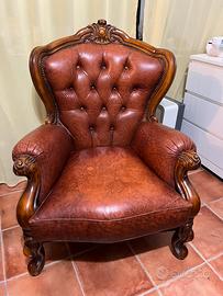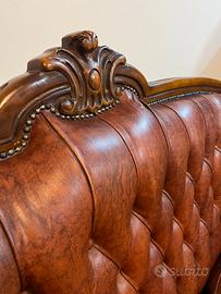 Set divano 3 posti con poltrone struttura in legno rivestimento in pelle stile barocco anni 80, tenuti in maniera ottima! Sono un caro ricordo di famiglia ma devo venderli per questione di spazio.