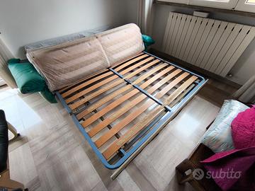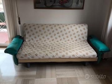 Divano letto in condizioni decenti e già perfettamente utilizzabile. Il letto è a doghe e di dimensioni 180x190. Nella penultima foto la copertura originale in ottime condizioni. Ha segni del tempo. Il divano si trova a Pistoia al quinto piano. Il trasporto richiede almeno due persone robuste e un furgone.