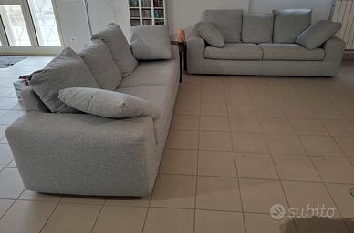 Vendo 2 divani 3 posti con letto matrimoniale marca PoltroneSofà sfoderabili pari al nuovo utilizzati pochissimo. 1 divano mai aperto come letto e 1 usato 3 volte. Colore grigio chiaro. 2 anni di vita. Vendo proprio perché inutilizzati. Misure L 215 P92 H88 (schienale) A coppia 700 euro Singoli 400 euro l'uno Ritiro a carico dell'acquirente No perditempo o affaristi e soprattutto no scambi con nessun altro oggetto