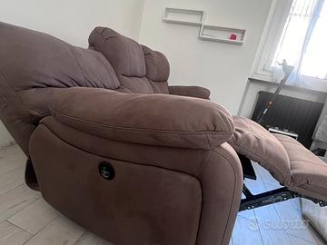 Il divano con schienale imbottito e 3 posti, è dotato di pediera estraibile e meccanismo recliner elettrico o manuale. Imbottitura e poggiareni rinforzato,morbidi braccioli e schienale ergonomico caratterische che lo rendono ideale per chi cerca comfort assoluto. Proposto in ciniglia colore tortora