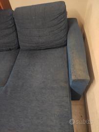 Divano blu 3 posti con penisola ambidestra, usato.