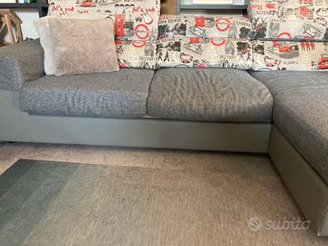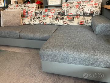 Vendo divano color grigio da 3 posti con penisola(e’ una prolunga staccabile) in ecopelle rivestito in tessuto perche molto vissuto.