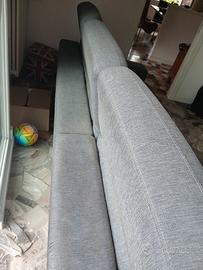 divano 3 posti con penisola staccabile, in tessuto, sul retro è graffiato