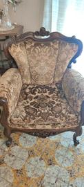 bellissimo divano tre posti più due poltrone, legno e stoffa con disegni in rilievo. conservato in maniera impeccabile. possibilità di visionare il prodotto presso mia abitazione in Misterbianco. prezzo ritoccato in maniera considerevole