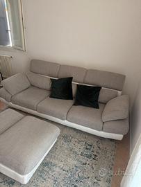 Vendo divano 3 posti in tessuto grigio, moderno, comodo ed elegante, compreso di pouf. Cuscini sfoderabili e lavabili. dimensioni 2,47x 1,13x 0,97mt. Consegna a carico dell'aquirente.