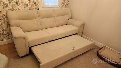vendo divano 3 posti in tessuto microfibra colore beige antimacchia in ottime condizioni come nuovo, con pouf a delfino che si estrae nella parte inferiore ,meno di 2 anni di vita, comprato da DONDI SALOTTI, attualmente ancora in. e dita al prezzo di 1.079€ scontato vendo per cambio casa. parte sotto estraibile ottimo x stare più comodi o anche come divano letto di emergenza. trasporto a carico di chi acquista. Misure: Lunghezza 211 x 95 cm altezza Profondità da chiuso 90 cm Aperto profondità tot.152 cm per info contattatemi solo se interessati.