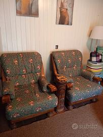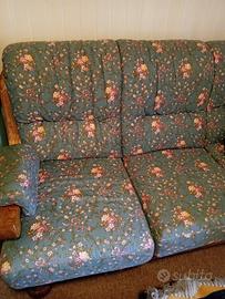 Divano a 3 posti e 2 poltrone stile rustico, in buonissime condizioni. Fantasia a fiori su sfondo verde/turchese. Usato pochissimo. Tutti i cuscini sono sfoderabili ed anche i braccioli imbottiti si possono rimuovere. Solo ritiro a mano a Claut (Pordenone). prezzo trattabile solo se realmente interessati