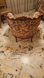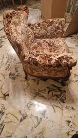 Struttura in legno massello intagliato, tappezzeria floreale originale, in ottime condizioni generali, comodo e ben tenuto.