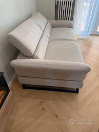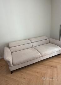 Vendo per rinnovo arredo splendido divano modello "Haiti" di Conforama, acquistato solo un anno fa (prezzo di listino 900€). Il divano è stato tenuto con estrema cura ed è in condizioni eccellenti, praticamente pari al nuovo. Si tratta di un modello dal design contemporaneo e pulito, molto spazioso grazie alla sua lunghezza generosa. È dotato di poggiatesta inclinabili manualmente che permettono di regolare il comfort della seduta in base alle proprie esigenze (posizione relax o conversazione). Caratteristiche e Dimensioni: • Modello: Haiti (Conforama) • Lunghezza: 220 cm (3 posti comodi/maxi) • Profondità: 100 cm • Altezza: 80 cm • Dettagli: Poggiatesta reclinabili a più scatti. • Piedini: In metallo scuro, design moderno e sottile. • Colore: Beige neutro / Sabbia. Condizioni e Ritiro: • Stato: Usato pochissimo (1 anno), imbottiture ancora perfette e sode.